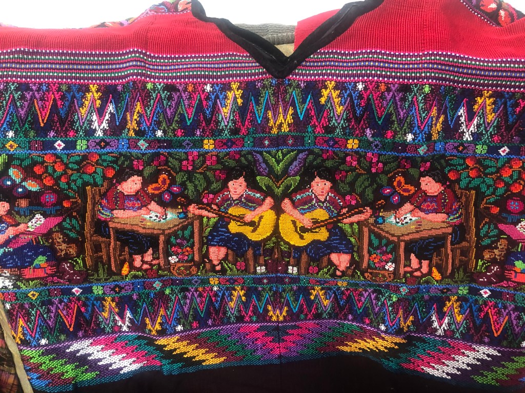 Una noche, después de cenar, nos sentamos a conversar sobre la vida cotidiana. Aprendí más sobre las tradiciones y conocimientos kaqchikeles que lo logrado durante la investigación. Adelina me explicó, paso a paso, cómo se elaboran los huipiles: cómo diseñan los patrones, cómo preparan el hilo, cómo seleccionan los temas que plasman. Todo un legado que se transmite de generación en generación.