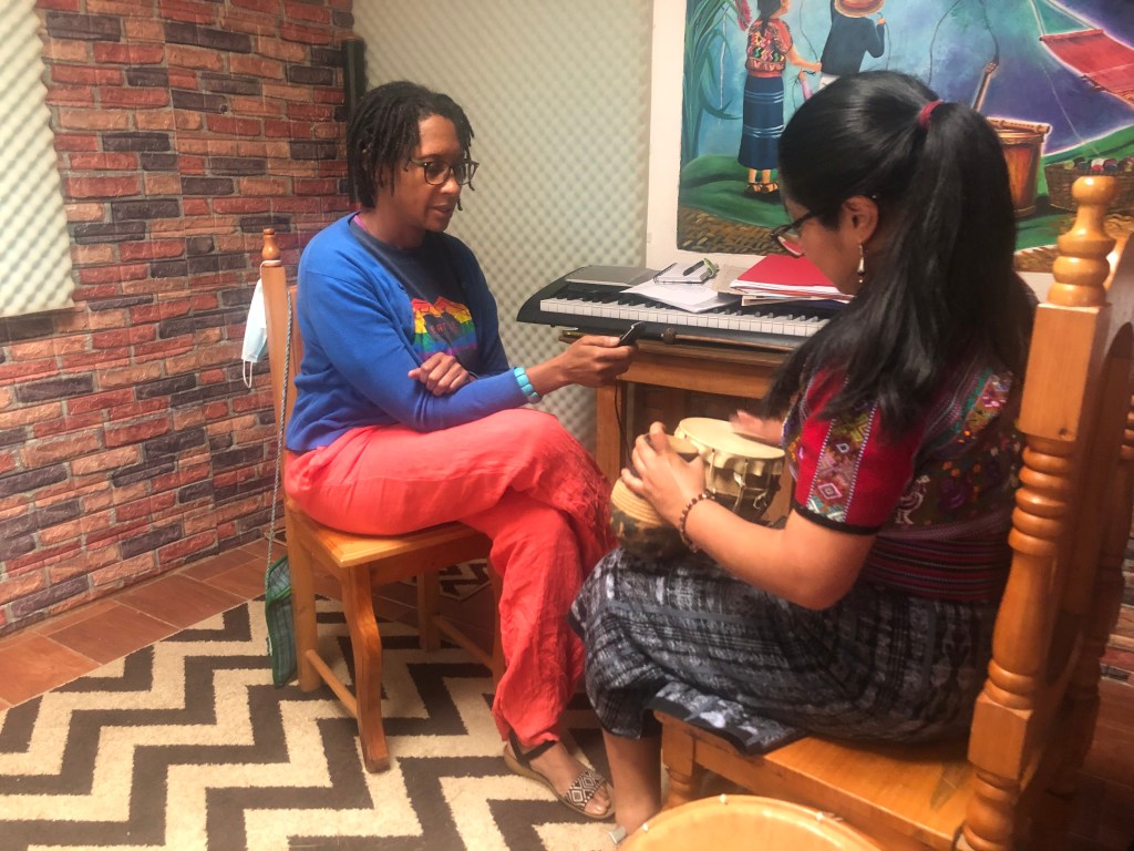 Ch’umilkaj participó en el panel de discusión La naturaleza como colaboradora ¿Qué significa esto y puede marcar la diferencia?. Ella y Adelina se sumergieron en el ambiente musical y conocieron a personas de muchos países. Entre ellas estaba Natalia Castrillón, amiga, creadora y artista residente en Helsinki, a quien he visto tocar el arpa en varios eventos. Y, como el mundo es pequeño, Natalia fue la intérprete de Ch’umilkaj durante el panel.
